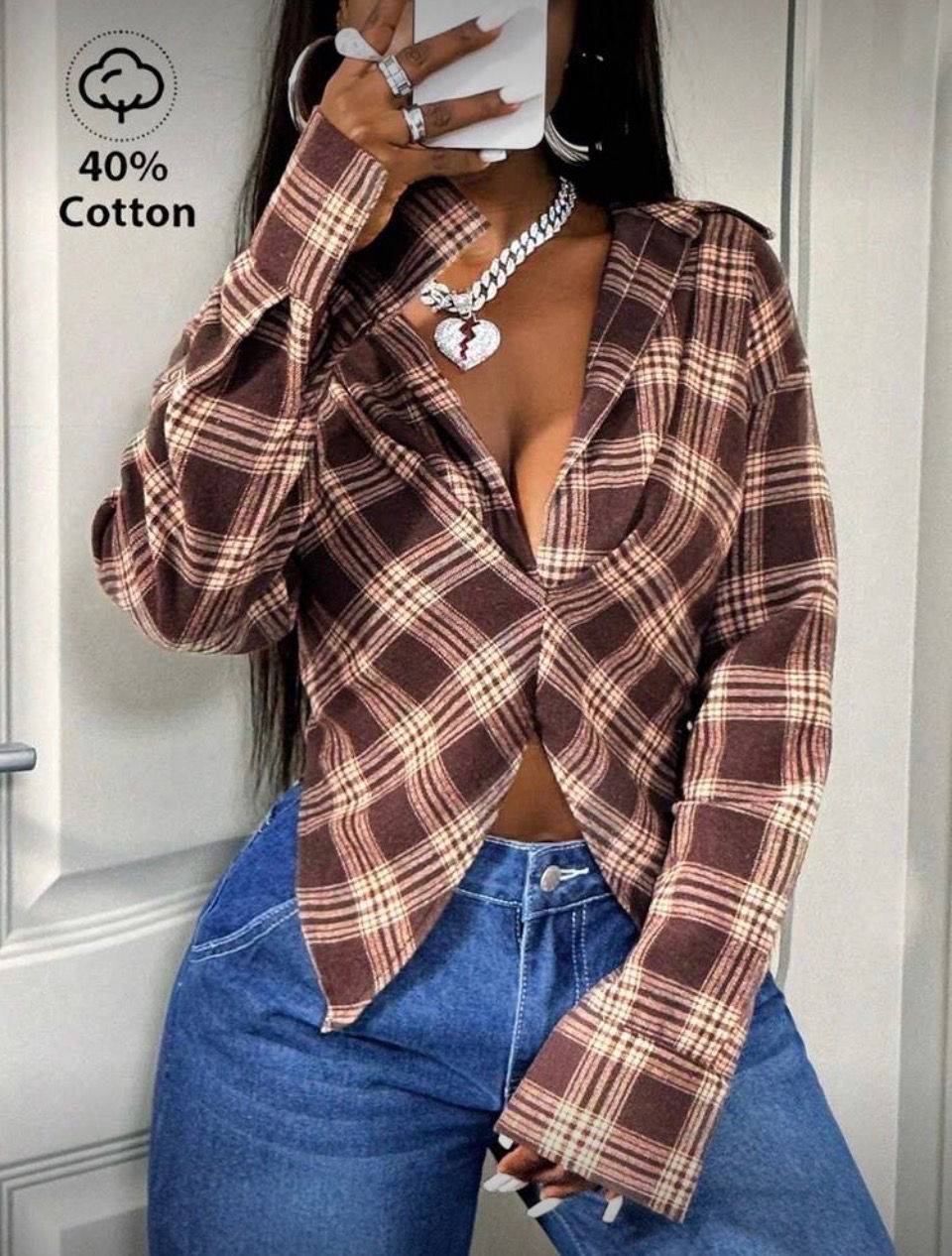 Mocha Plaid Button Top